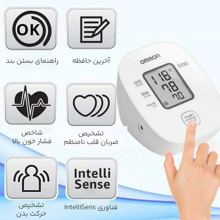 بند امرن یکی از تولید کنندگان شناخته شده ی ابزارهای سلامتی به ویژه دستگاه های فشارسنج با کاربرد خانگی است. کاف این دستگاه مناسب برای بازوهای با اندازه 22 تا 32 سانتی متر مناسب است و کار با آن بسیار ساده است این دستگاه به تکنولوژی اینتلی سنس مجهز است که به ای نصورت تریت فرایند فشارگیری کوتاه و بدون درد یا فشارزیاد به بازو انجام میشود