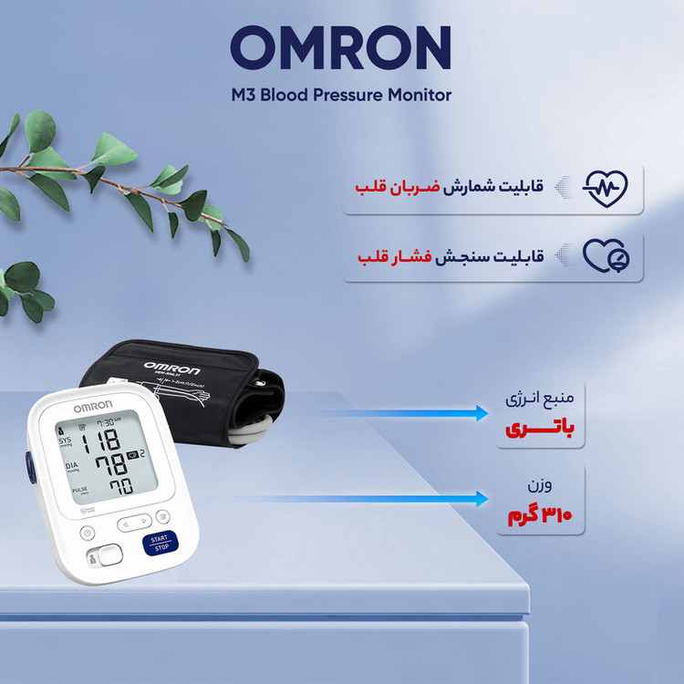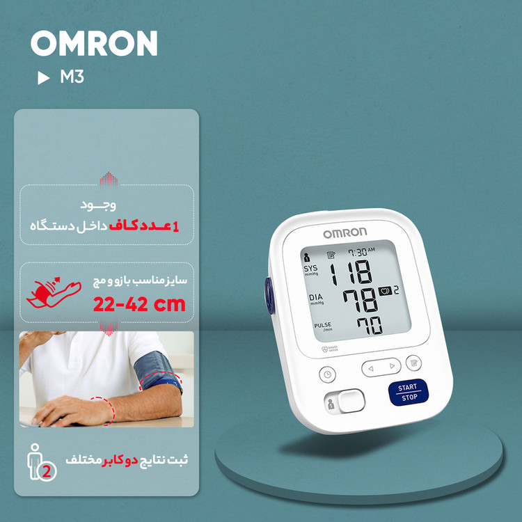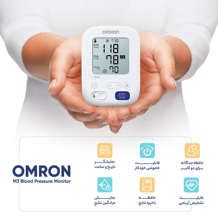 فشارسنج دیجیتال بازویی امرن مدل m3 دستگاه فشارسنج دیجیتال Omron M3 Arm یکی از دستگاه های پرطرفدار و کارآمد برای اندازه گیری فشار خون است. این دستگاه دارای ویژگی های منحصر به فردی است که به کاربران امکان می دهد به راحتی و دقت فشار خون خود را اندازه گیری کنند. از جمله این ویژگی ها می توان به نمایشگر دیجیتال با خوانایی بالا، سهولت در استفاده و حافظه برای ذخیره اندازه گیری های گذشته اشاره کرد. این محصول برای افرادی که نیاز به نظارت منظم بر فشار خون خود دارند یا به عنوان یک ابزار اندازه گیری در خانه یا محل کار مورد استفاده قرار می گیرد. ویژگیهای منحصر به فرد دستگاه Omron M3 Arm این دستگاه دارای ویژگیهای منحصر به فردی است که آن را از سایر دستگاههای فشارسنج متمایز میکند. به عنوان مثال، Omron M3 Arm دارای فناوری IntelliWrap است که دقت بالایی در اندازهگیری فشار خون فراهم میکند. همچنین، این دستگاه دارای حافظهای است که به شما امکان میدهد تا آخرین نتایج اندازهگیری را ذخیره و مقایسه کنید. استفاده از دستگاه فشارسنج Omron M3 Arm برای افرادی که به مانیتورینگ فشار خون خود علاقه دارند یا نیاز به کنترل فشار خون دارند بسیار مفید است. این دستگاه با طراحی ساده و آسان برای استفاده، به افراد امکان میدهد تا به راحتی و به دقت فشار خون خود را اندازهگیری کرده و نتایج را ثبت کنند. مراحل صحیح برای اندازهگیری فشار خون قبل از شروع به اندازهگیری فشار خون، اطمینان حاصل کنید که بهترین زمان برای اندازهگیری را انتخاب کرده اید. بهتر است این عمل را پس از استراحت کامل و پیش از مصرف غذا یا نوشیدنی انجام دهید. دستگاه دیجیتال را به دقت روی بازوی خود قرار دهید و اطمینان حاصل کنید که منبع برق آن روشن باشد. سپس منبع برق را روشن کرده و منتظر شدن نمایشگر دستگاه برای شروع عملیات اندازهگیری باشید. بهطور منظم و با ثابت نگه داشتن دستگاه بر روی بازو، دکمه شروع اندازهگیری را فشار دهید و منتظر پایان عملیات باشید. پس از اتمام اندازه گیری، نتیجه نمایش داده شده را به دقت خوانده و ثبت کنید.