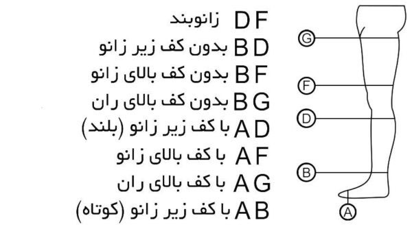 در مدلهای مختلف شامل زیر زانو (AD)، بالای زانو (AG)، و جوراب شلواری (AT) موجود است تا پاسخگوی نیازهای درمانی و سلیقههای مختلف باشد.