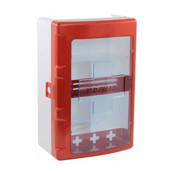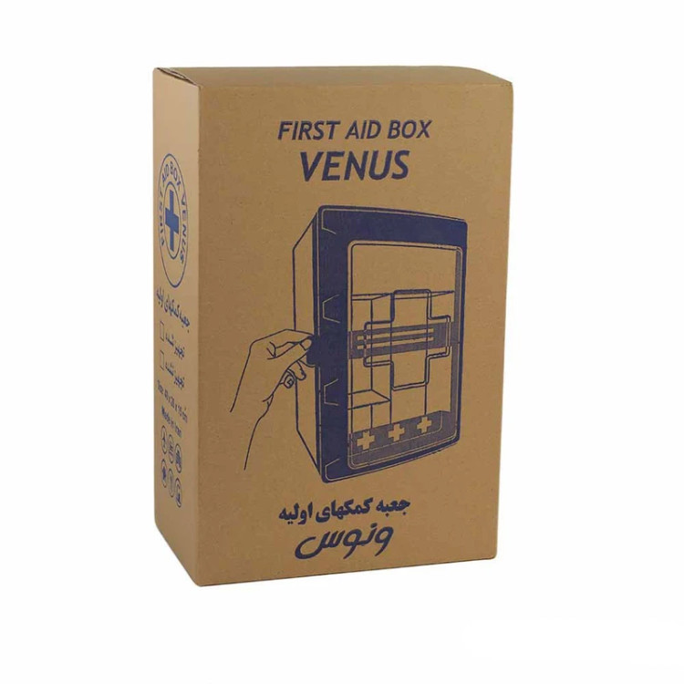 جعبه کمک های اولیه ونوس در عین سادگی، تجهیزات اولیه در موارد اضطراری را در اختیار شما قرار داده و می توانید در صورت بروز سوانح و یا سایر حوادث ناگوار، به کمک وسایل و تجهیزات اولیه موجود در این جعبه از آسیب های بیشتر به مصدوم یا مصدومان جلوگیری نمایید.ابعاد این جعبه کمک های اولیه با طول 40 سانتی متر، عرض 26 سانتی متر، ارتفاع 16 سانتیمتر است. جنس این جعبه پلاستیک فشرده ABS بوده و علاوه بر مقاومت خوبی که در برابر آسیب های احتمالی دارد، در صورت برخورد با سایر وسایل و یا افتادن نمی شکند.قسمت پشتی جعبه سفید و قسمت رویی جعبه برای دید بهتر قرمز رنگ طراحی و تولید شده است تا شما بتوانید در محیط های تاریک نیز این محصول را بیابید. قسمت پشتی و جلویی این جعبه به خوبی به یکدیگر متصل هستند. درب محصول به صورت قفل محکمی در سمت جانبی آن قرار گرفته است و درواقع قسمت قرمز رنگ جلویی را به قسمت سفید رنگ پشتی پیوسته می نماید. این جعبه هم به صورت جعبه قابل نگه داری و حمل در ماشین و … می باشد و هم آن که شما می توانید جعبه کمک های اولیه ونوس را به کمک پیچ به دیوار متصل نموده و در صورت لزوم از محتویات درون آن استفاده نمایید.